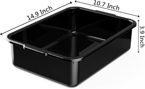 - Pack of 5 Black Multifunctional Commercial Boxes: box size is 15 x 11 x 3 3/4 inches and 8 gallons capacity. Its size and capacity meet the needs of most families.