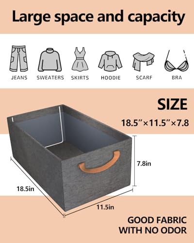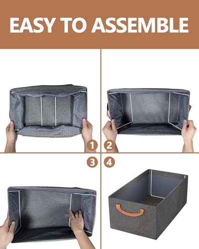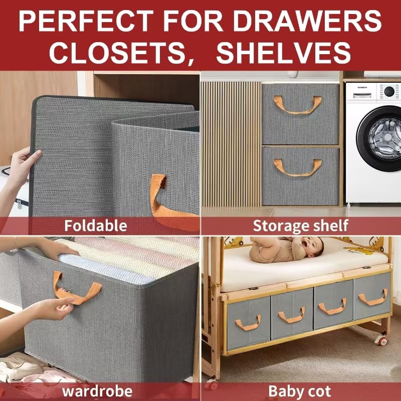 organizer box - صندوق تخزين منظم بمقابض، صناديق تخزين، منظمات خزانة قابلة للطي، صندوق تخزين للخزانة، صندوق تخزين قابل للطي، صندوق تخزين رمادي (عبوة من 3 قطع)