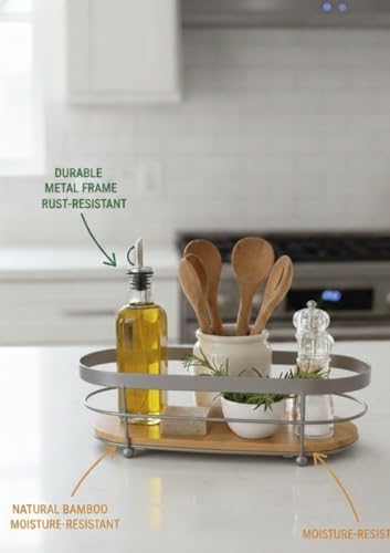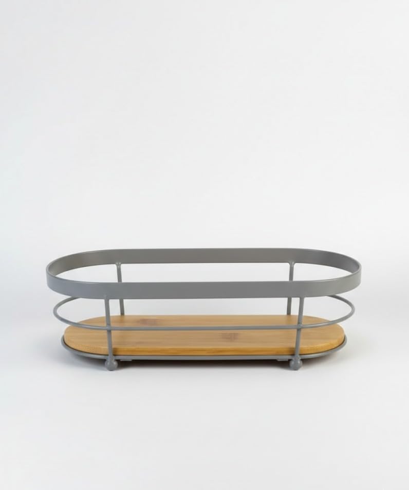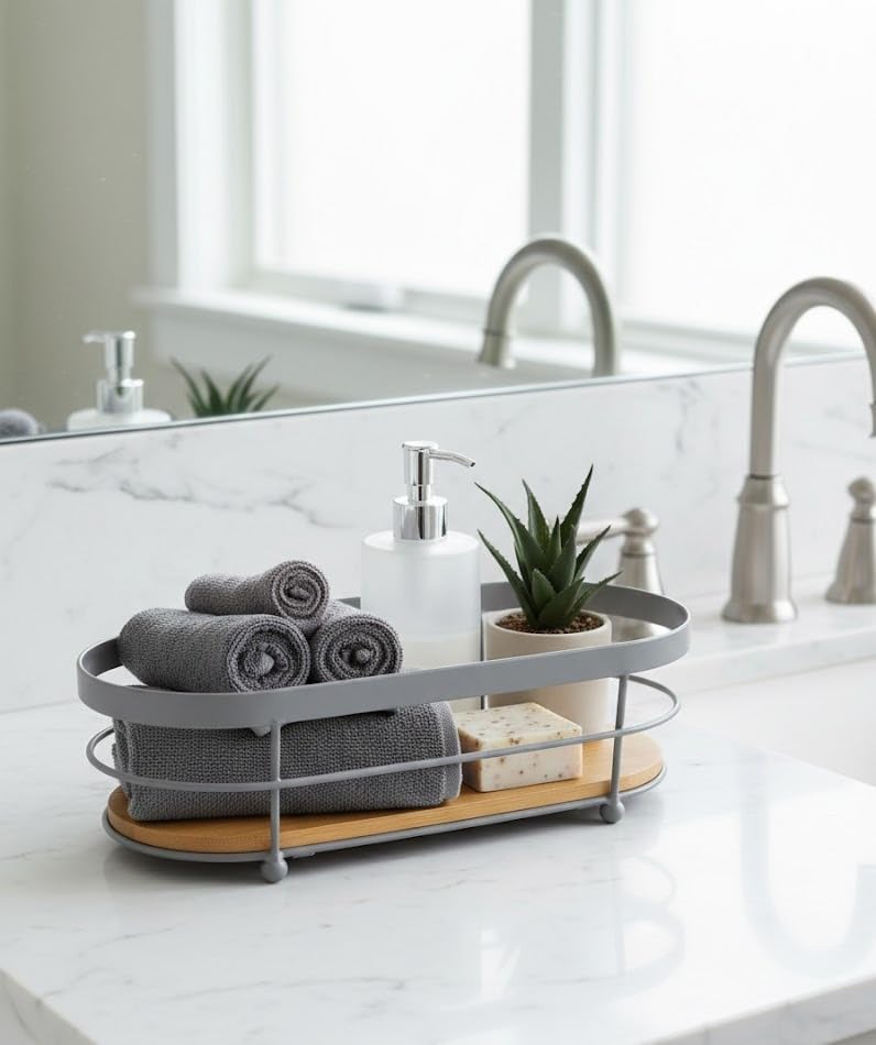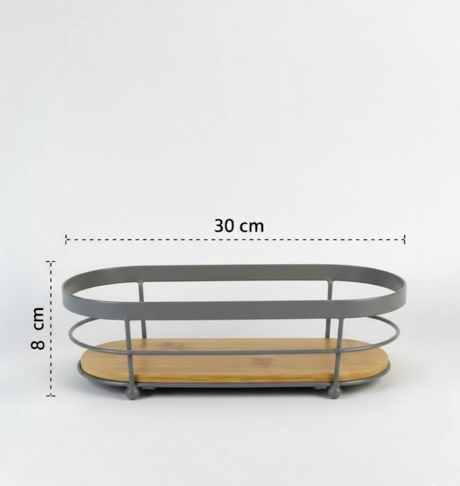 Generic - Organizer countertop storage tray with metal frame and bamboo base for kitchen bathroom vanity sink (gray)