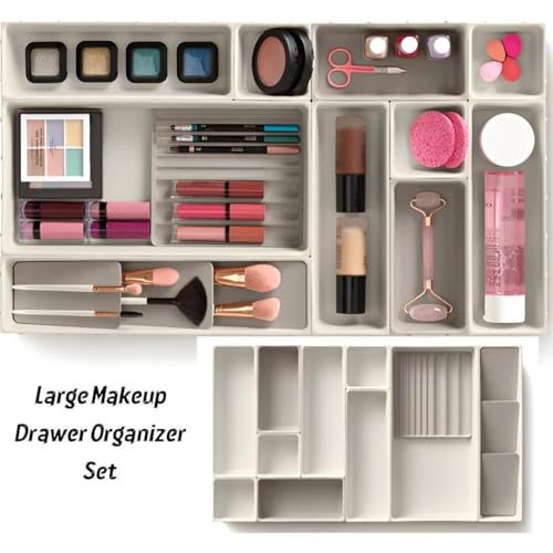 - With this organiser set, messy and chaotic drawers become a thing of the past, as each cosmetic, brush, and accessory gains a designated stylish spot, turning your vanity into a clutter-free zone of beauty and calmness.