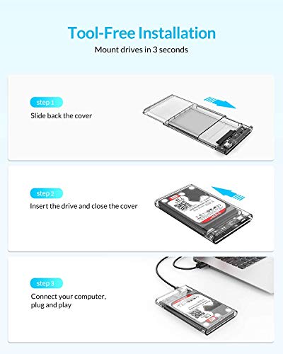 - ORICO 2.5 Inch External Hard Drive Enclosure USB 3.0 Transparent Case SATA Reader for 9.5mm & 7mm 2.5" SSD and HDD