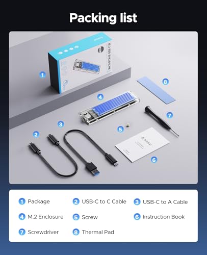 Orico - حافظة قرص صلب الذاكرة المستديمة M.2 الى USB 3.1 نوع C الجيل الثاني 10 جيجابت/ ثانية من اوريكو، لو شفاف، حافظة محول منفذ الملحقات الاضافية السريع 2280 2260 2242 2230 M2 M-Key (ازرق-TCM2)