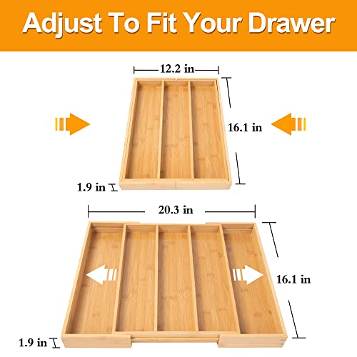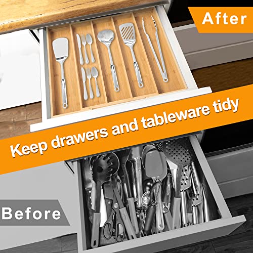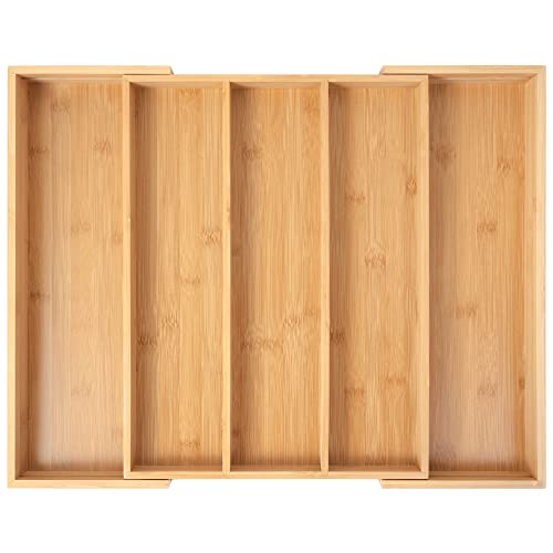 oridom - منظم أدوات المائدة الفضية من الخيزران اوريدوم درج المطبخ القابل للتوسيع تخزين متعدد الأغراض لتنظيم الأواني بسعة كبيرة في الدرج