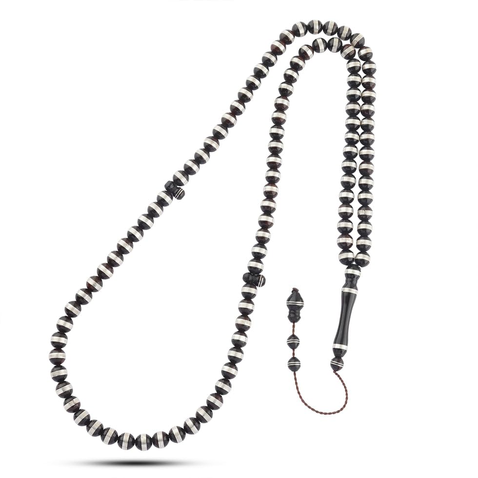Generic - Oriental Circular Kook Wood Rosary – 99 Silver-Inlaid Beads