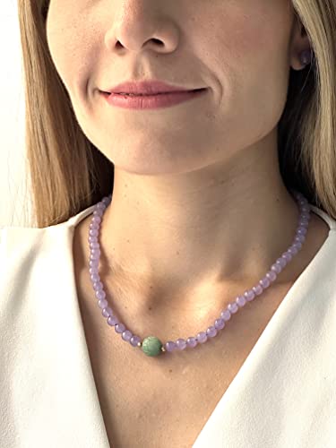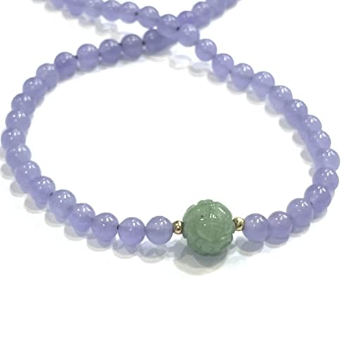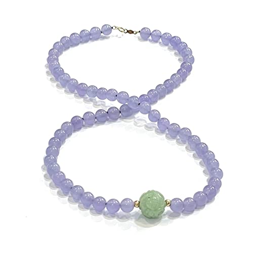 Oriente Pacific - اورينتي باسيفيك - قلادة منحوتة يدويا في المنتصف من اليشم واللافندر مع بروش عيار 14 قيراط ميديانو واليشم