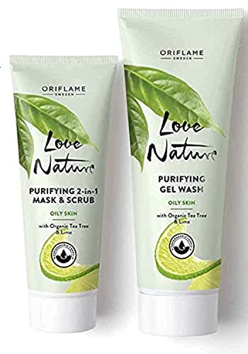Oriflame - مجموعة لوف نايتشور للعناية بالبشرة للبشرة الزيتية بخلاصة شجرة الشاي الأورجانيك و الليمون من أوريفليم - 2 قطعة