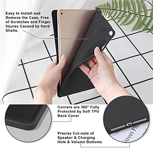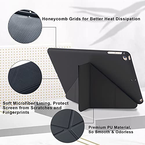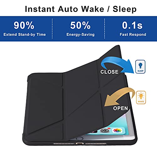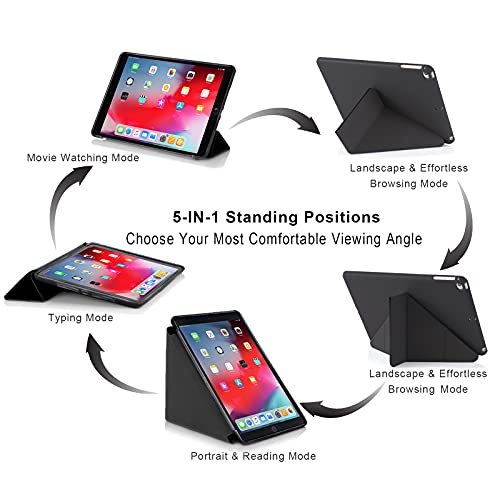 MuyDouxTech - جراب حماية من سيليكون ناعم بجزء خلفي بولي يوريثين حراري لايباد 9.7 بوصة جيل سادس 2018 وخامس 2017، يناسب أيضا ايباد اير 2013 واير 2 2014 برؤية متعددة الزوايا 5 ×1 اوريجامي، أسود، لأجهزة لوحية