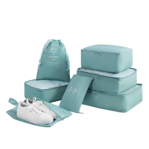 - 7 قطع بأحجام متنوعة لتخزين الملابس، الأحذية، الأدوات الشخصية، أو مستلزمات السفر الصغيرة.