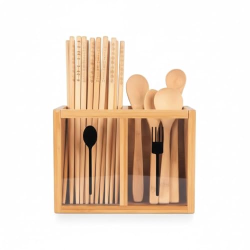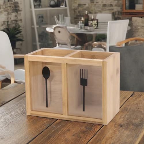 Generic - Original Bamboo Wooden Spoon Organizer and Strainer – 2 Compartments – Waterproof and Ideal for Forks, Spoons and Knives KA