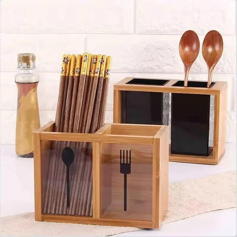 - A genuine waterproof bamboo wood organizer and strainer that keeps spoons, forks and knives dry and tidy