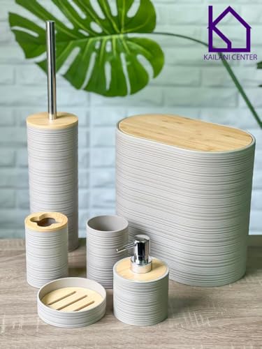 Generic - Original Bathroom Set 6x1 Premium Material Combining Durable Plastic and Natural Beech Wood