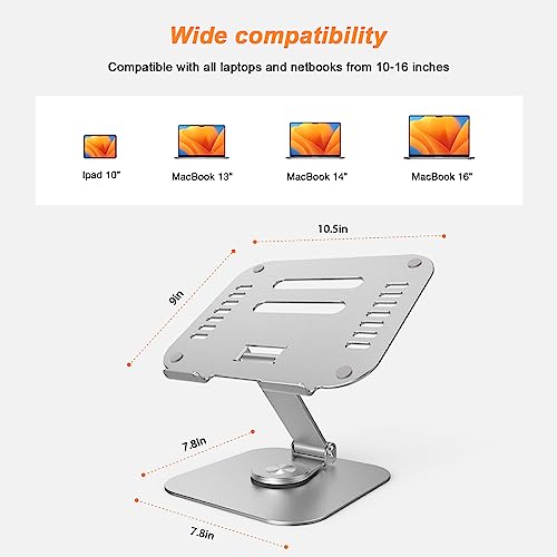 ORIGLIFE - 360 Degree Rotation Laptop Stand, Ergonomic Height & Angle Adjustable Riser Mount, Al-Alloy Notebook Holder Compatible With MacBook Air/Pro, Dell, Samsung, HP, 10-16"