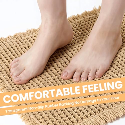 Orivix - Waffle Bath Mat 17"x24", Absorbent Non Slip Bath Rug, Machine Washable, Boho Bathroom Rugs with Tassel, Rubber Backed, Soft Bath Mat for Shower Floor & Bathroom Decor