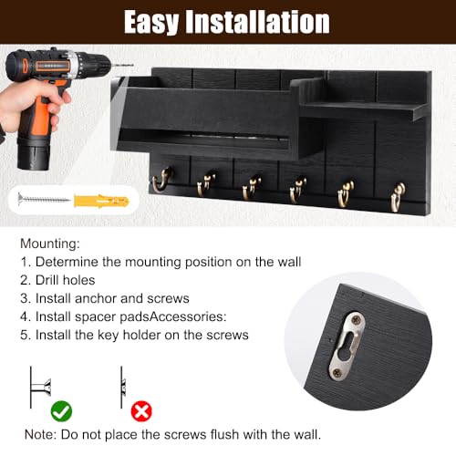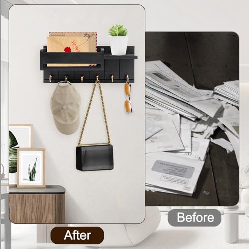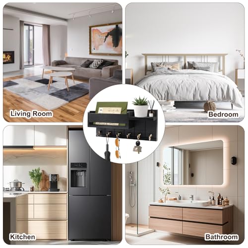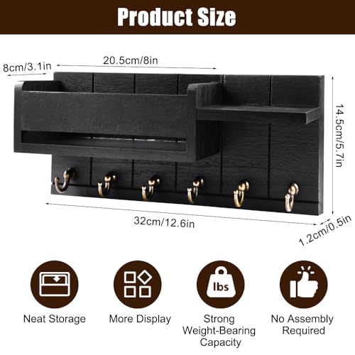 - Space-saving: Wall key holder for home is 32 cm long and 14.5 cm wide, equipped with mounting screws, strong load capacity, effective use of wall space, convenient and practical, together of organization and aesthetics in one, the black appearance can be harmoniously matched with any interior decor