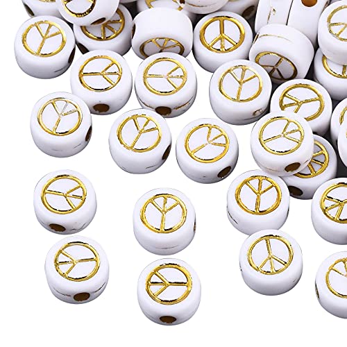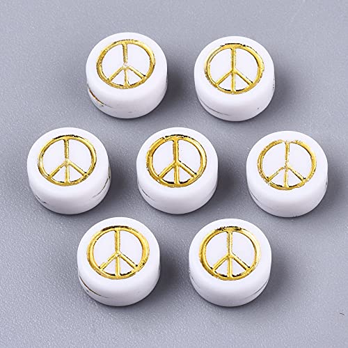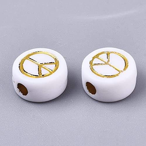 - Size: Contains 200 acrylic beads with a peace sign, the color is white. The diameter of the spacer bead is about 7mm, the thickness is about 4mm, and the hole diameter is about 1.6mm