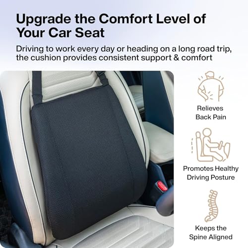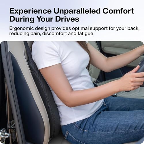 Orthowala - Orthowala® Car Back Support – Orthopedic Lumbar Support Pillow for Car Seat & Office Chair | Memory Foam Backrest Cushion for Back Pain Relief | Adjustable Straps for Secure Fit – Long Size (Black)
