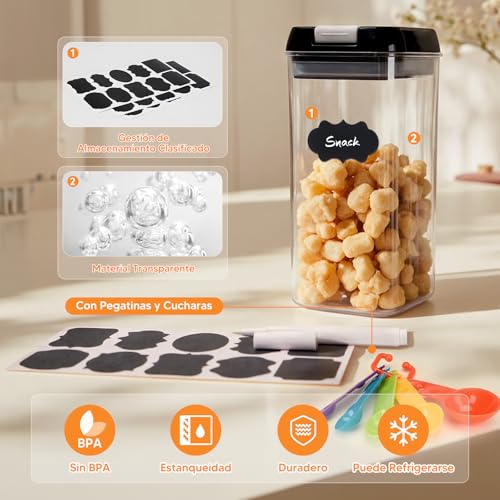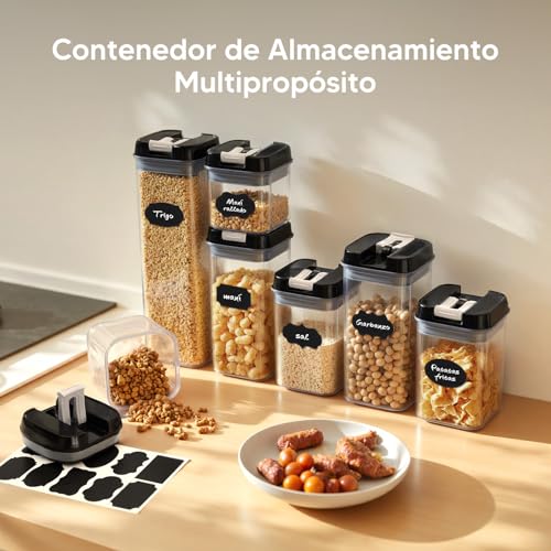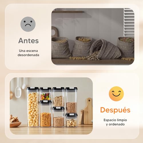 - ✅【Premium Set】These kitchen jars with locking lid are the perfect gift for your loved ones. They are ideal plastic containers for keeping dry goods such as sugar, cereal, flour and snacks fresh. The improved closure system also facilitates the storage of liquids.
