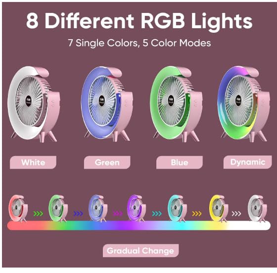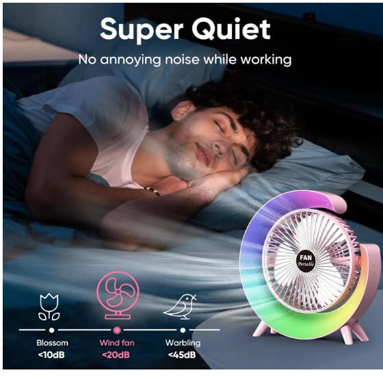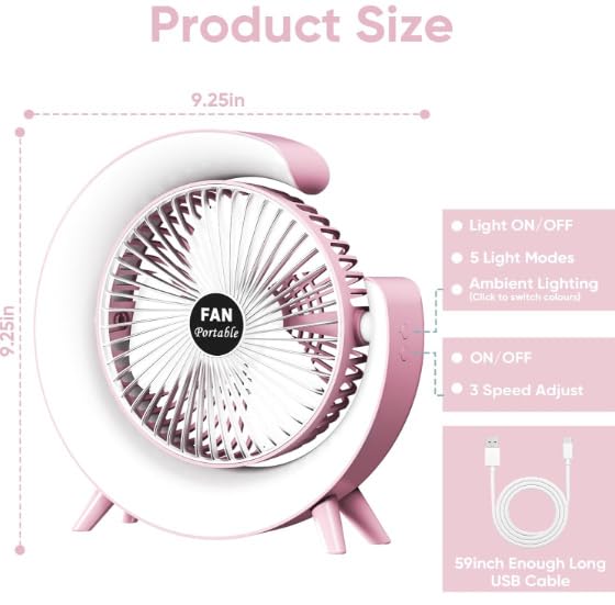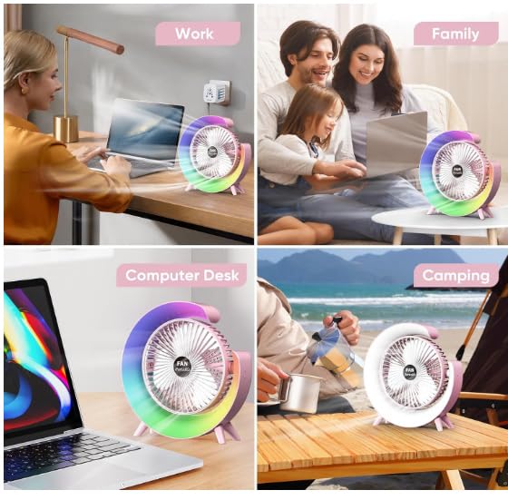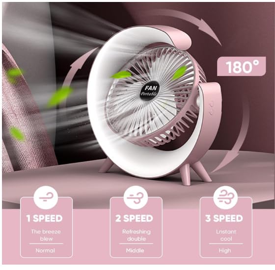 Generic - Osuke 12.7cm Personal Desk Fan with LED Light, Portable Table Fan with 3 Speeds and 180° Tilt, USB Rechargeable Battery Operated Quiet Cooling Fan for Bedroom, Office, Outdoor Camping