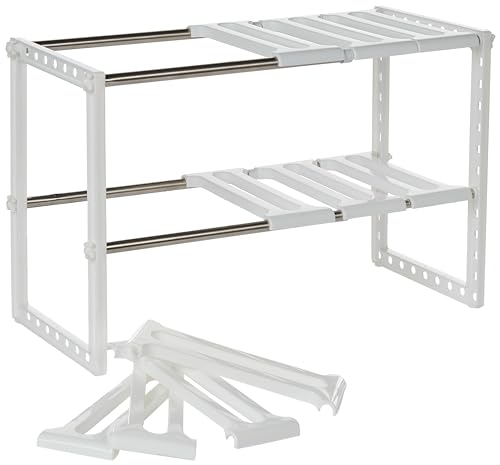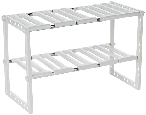 Spaceshoop - رف مطبخ شديد التحمل قابل للتوسيع والتعديل، لون أبيض، مقاس 37 × 26 سم، منظم تخزين للمطبخ تحت الحوض