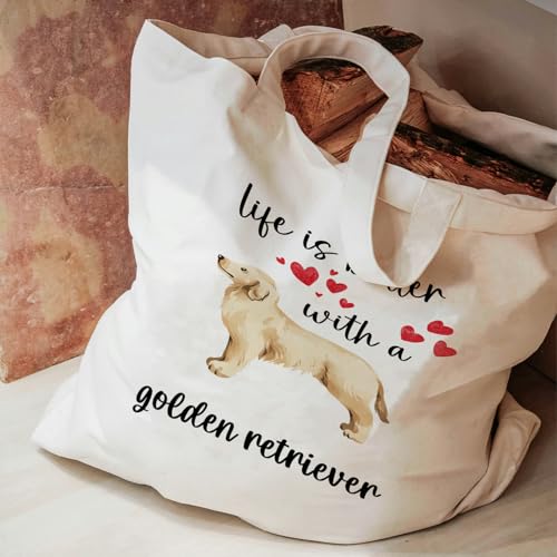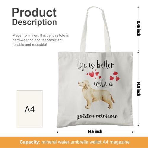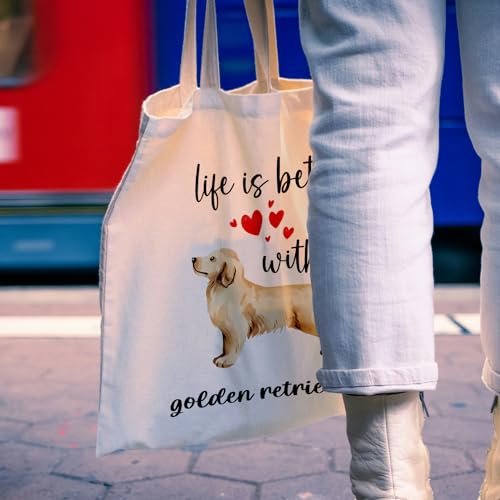 OTOUO - Dog Lovers Women's Reusable Canvas Tote Bag for Dog Owners, Golden Retriever, One Size