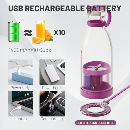 OTPEIR - OTPEIR Personal Size Blender, Portable Blender, Battery Powered USB Blender (Purple)
