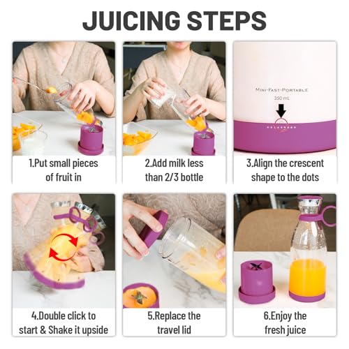 - Easy to Clean and Operation: The personal blender can be opened up and down. You can open the cap to drink and open the bottom to clean.The small blender is simple to operate, with only one button.Double click the switch to turn on the power.When working,you can shake the bottle by holding it at 45 degrees for better mixing.The single stirring time is 30 seconds.