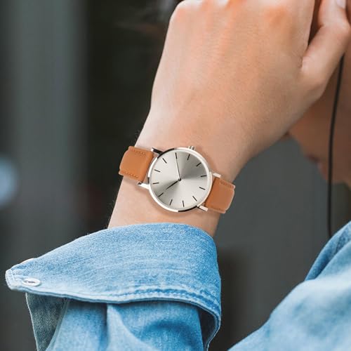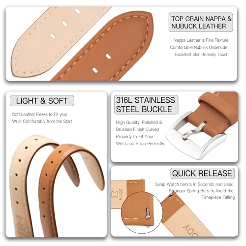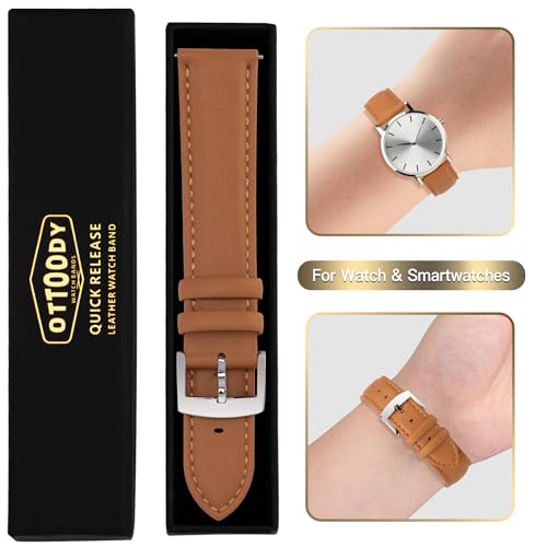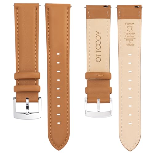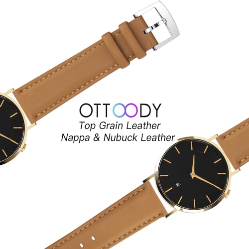 OTTOODY - اوتودي اساور ساعة جلدية سريعة الفك، سوار ساعة انيق وناعم من الجلد الطبيعي المحبب للرجال والنساء، 22 ملم 21 ملم 20 ملم 18 ملم 16 ملم، اساور بديلة للساعة الذكية والساعة الذكية، مشبك فضي