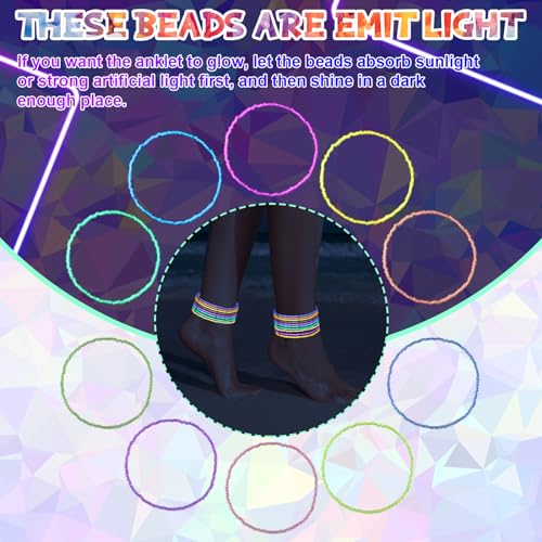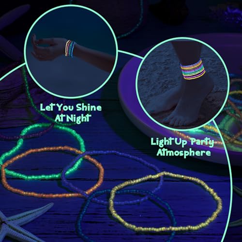 - Fluorescent Beaded Ankle Bracelets: these beaded anklets for women can glow in the dark, ensure you stand out in the crowd; After absorbing sunlight or strong artificial light, these shiny beads emit light, making you the brightest star at any event