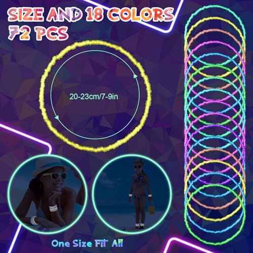 - Glow Ankle Bracelets for Women Bulk: you will receive 72 pieces of beaded ankle bracelets in 18 colors; This adequate quantity and assorted styles will satisfy your different needs, you can share them with your friends to show your styles, that will suit casual outing, beach parties or even grand occasions