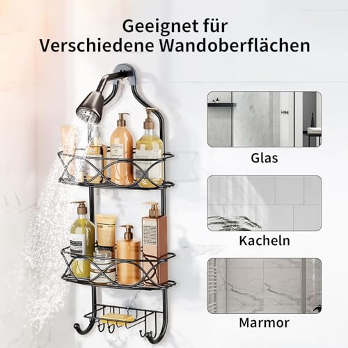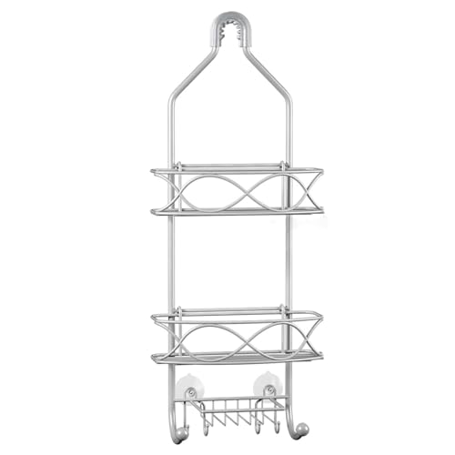 OUAYEMEL - رف دش للتعليق من اويميل، رف دش معلق من 3 طبقات فوق الباب مع حامل صابون وحامل شفرات الحلاقة لتنظيم الحمام، منظم دش (فضي (صندوق ملون))