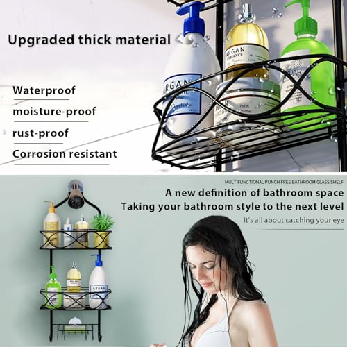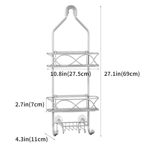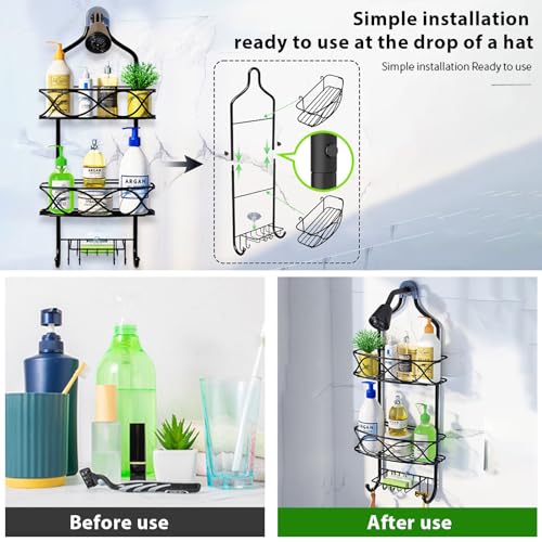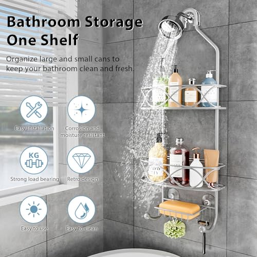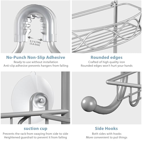 - الملحقات المتضمنة: يمكن استخدام رف التعليق المكون من 3 طبقات لتخزين عناصر متعددة والطبقة الثانية مجهزة بخطافات متعددة لتعليق كرات الاستحمام. تتضمن العبوة كوبين شفافين للشفط، يمكنك استخدامها حسب الحاجة لجعل الرف أكثر استقرارًا.