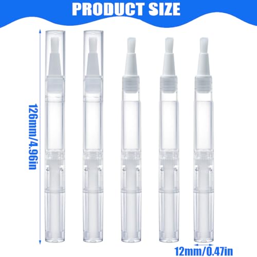 OUDQFCJ - 5 Pieces Nail Oil Applicator Brush, Empty Pen with Brush, Twist Lip Gloss Tube, Refillable Nail Polish Tubes, Cosmetic Containers (2 ml) (Transparent)