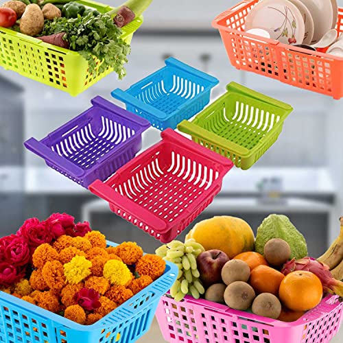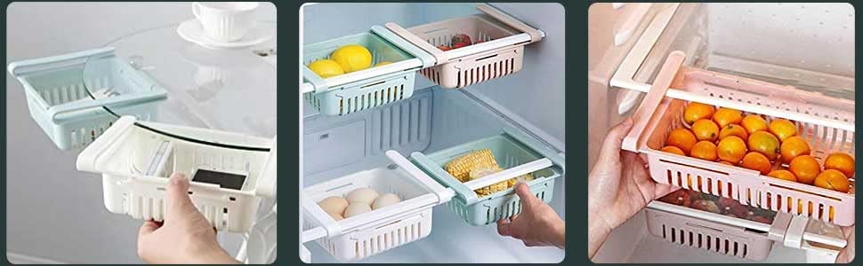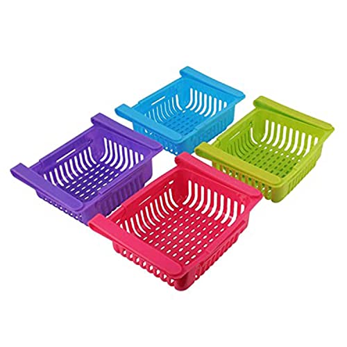 OUI MAMA ; HOME ETC - Plastic Fridge Organizer Drawer, Adjustable Fridge Storage Basket, Fridge Racks Tray Sliding Storage Racks(pack of 4) (Random Colour)