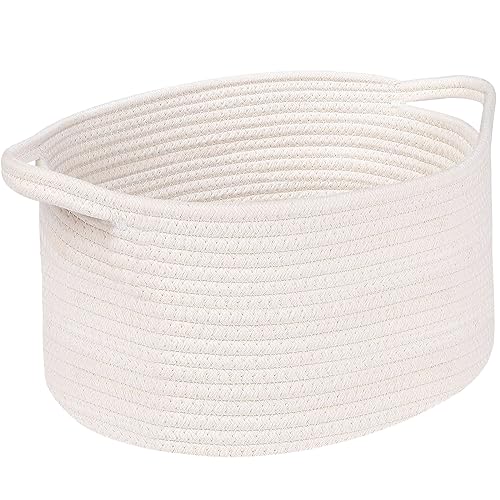 OUTBROS - OUTBROS Cotton Rope Woven Storage Basket, Baby Storage Organiser, Woven Storage Basket for Nursery Decor, Bathroom Storage Baskets for Shelves, White