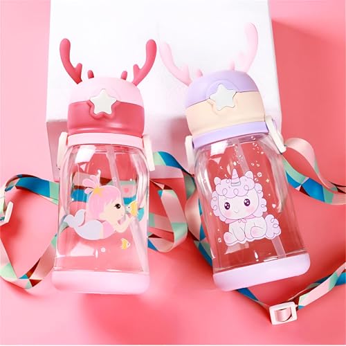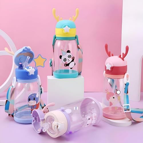 - This wide camping water bottle set (2 pieces) is designed for indoor and outdoor activities, making it perfect for school, sports, and family outings. Its cartoon-themed look paired with a flexible silicone straw and a comfortable carrying strap promotes hydration in a fun and engaging way, especially appealing to active children.