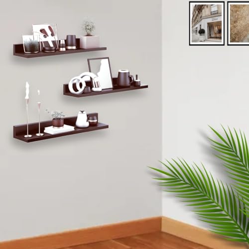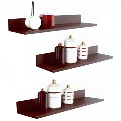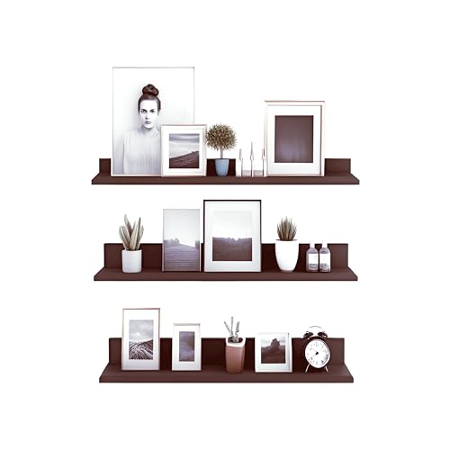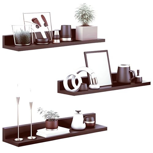 OUTKA - رف حائط عائم من اوتكا، رف تخزين يثبت على الحائط، رف رفوف صور، رف ديكور لعناصر ديكور المنزل، مجموعة من 3 قطع لغرفة المعيشة والمكتب وغرفة النوم والحمام (16 انش، بني)