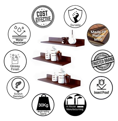 - الأبعاد: الأرفف العائمة المكونة من 3 قطع لها نفس حجم كل رف بطول 16 انش
