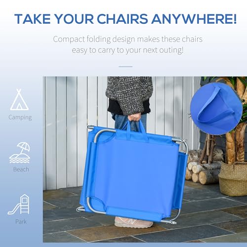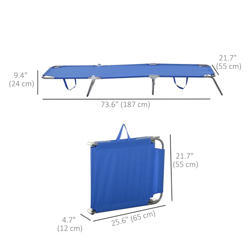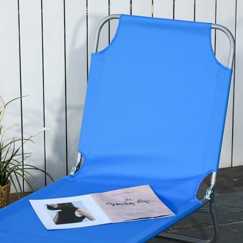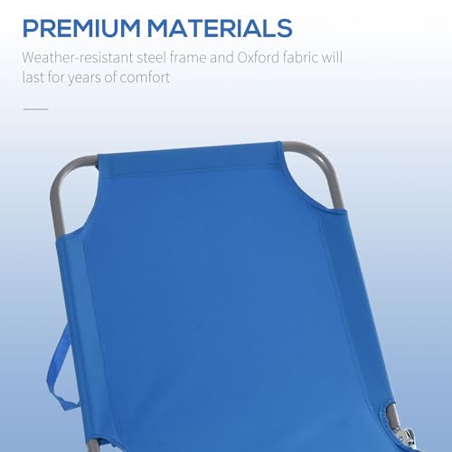 Outsunny - اوتسوني كرسي استرخاء قابل للطي، كرسي تسمير محمول، كرسي استرخاء للشاطئ قابل للامالة بالكامل مع نسيج شبكي جيد التهوية، سرير للاسترخاء في الشمس للفناء والحديقة وجانب المسبح، ازرق