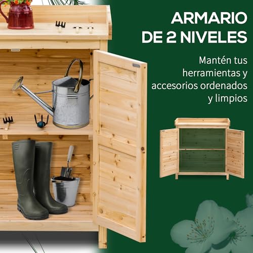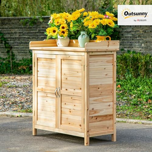 - WOODEN GARDEN CABINET: This compact wooden garden cabinet offers ample storage space to keep your gardening tools, fertilizers or other items you want to store organized
