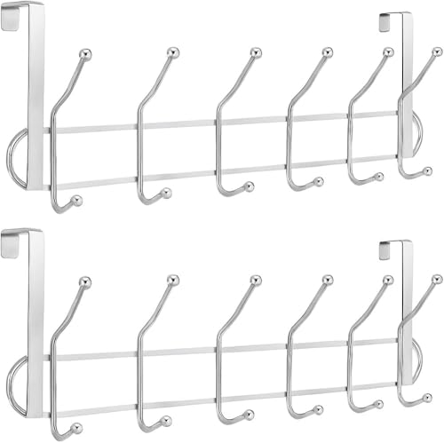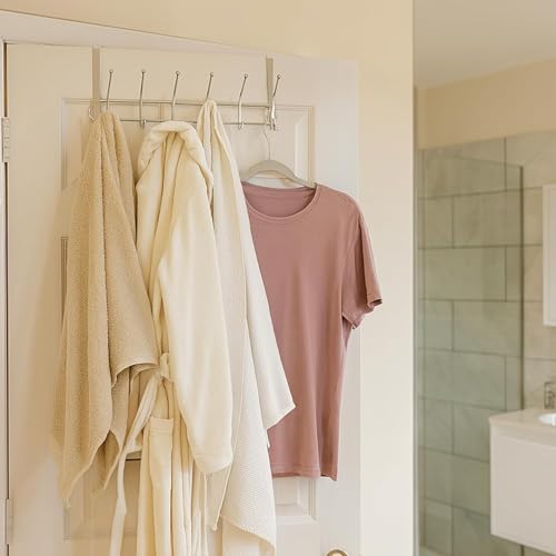 OVA - OVA Clothes Hanger – Over-the-Door Heavy-Duty Hooks for Towels, Hats and Robes, Space-Saving Door Organizer, Easy Installation (Silver - 2 Pieces)