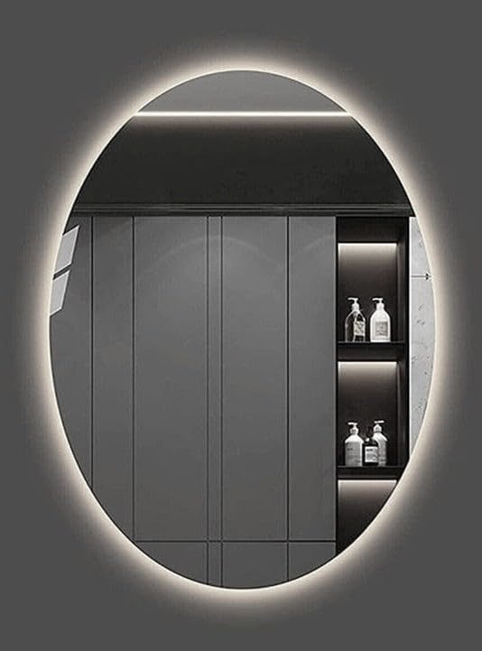 - Sleek and Stylish: This modern oval mirror design with integrated LED lighting for a warm, ambient glow.