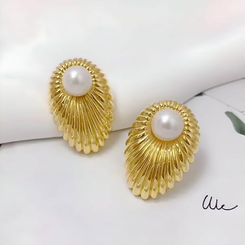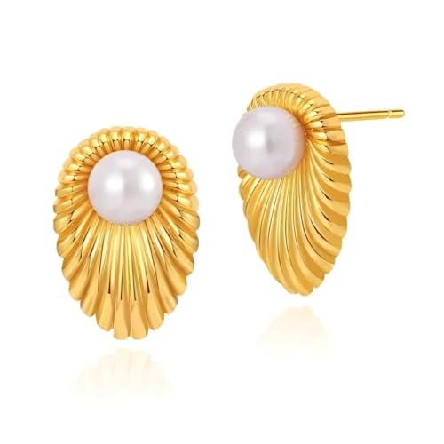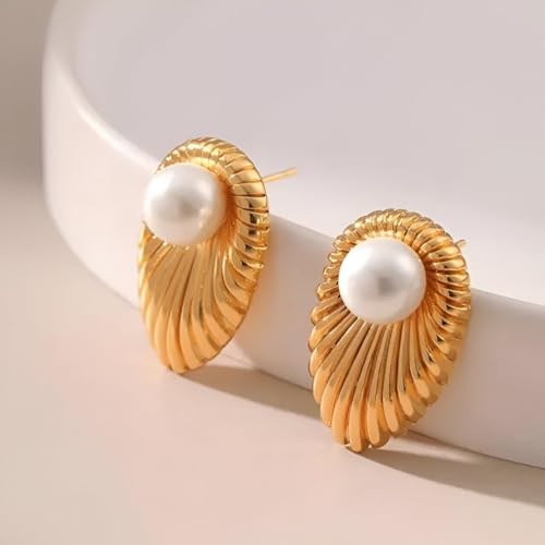 Generic - اقراط بيضاوية الشكل - تصميم ملتوي انيق من الستانلس ستيل مع لؤلؤ المياه العذبة للنساء، هدية مجوهرات مثالية لعيد الام والمناسبات الخاصة