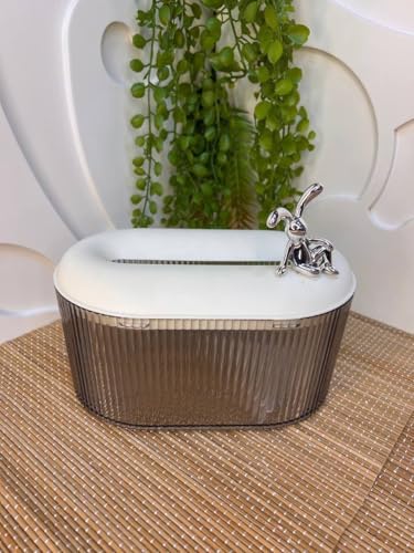 Generic - Oval tissue box decorated with silver rabbit accent, white and grey ribbed design
