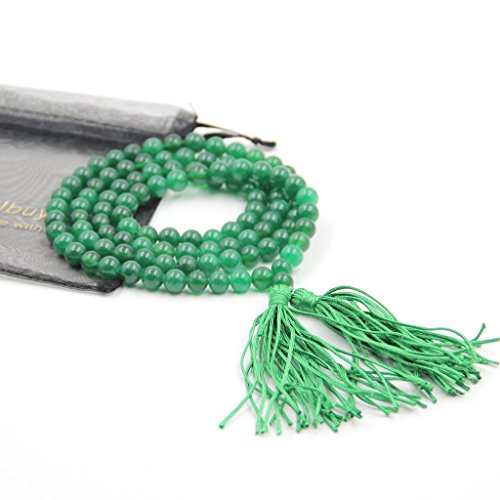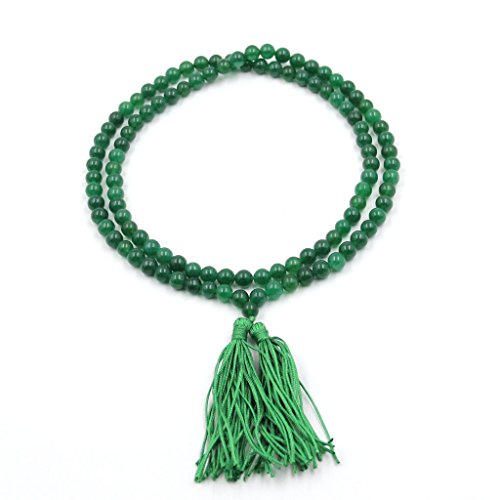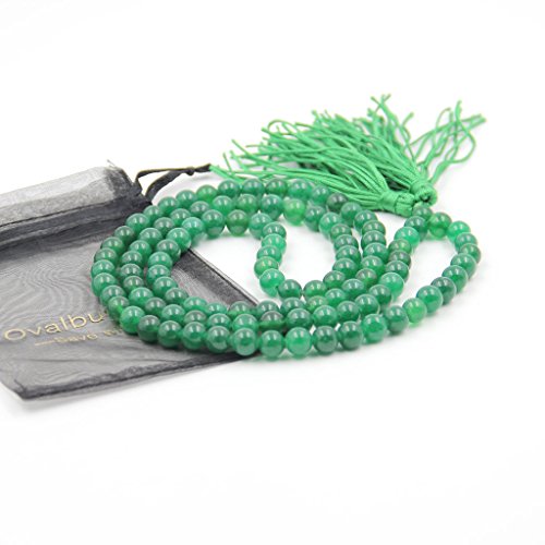 OVALBUY - 8mm 108 Green Stone Beads Tibetan Buddhist Prayer Mala Necklace