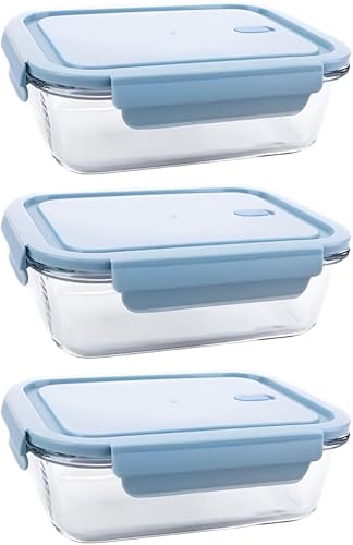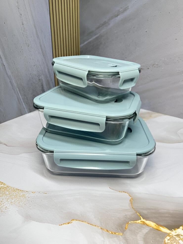 - This set includes 3 glass food storage containers, designed for meal prep and easy storage. They come with durable, leak-proof lids to keep food fresh for longer periods. The containers are available in different sizes to suit various needs, from lunch to dinner.