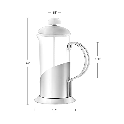 - متانة عالية الجودة – كل فرنش بريس مزود بإبريق من زجاج البوروسيليكات المقاوم للحرارة، مع طبقة حماية من الفولاذ المقاوم للصدأ مرتفع الجودة، ونظام مكبس ثلاثي المستويات مع فلتر شبكي لتصفية دقيقة.