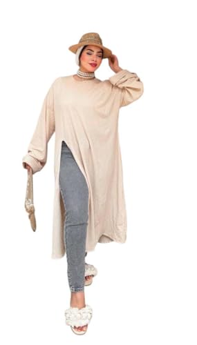 Generic - Over Size Women's Side Slit Long T-Shirt, Beige