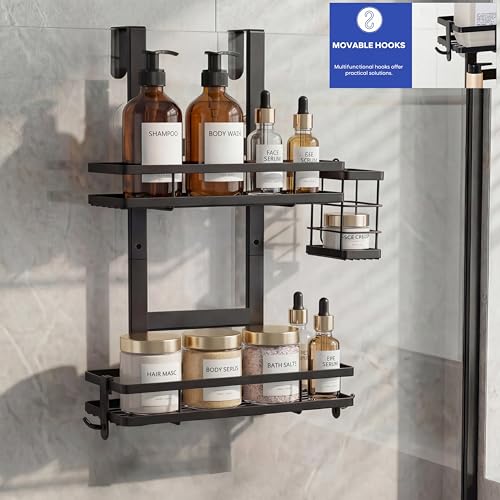 - ✅ [Convenient Bathroom Accessories Hooks]: Over the door shower caddy comes with practical hooks to hang bath balls, razors and other small items, maximizing space on the shower rack hanging. Perfect for families seeking additional organization and accessibility in bathroom routine.