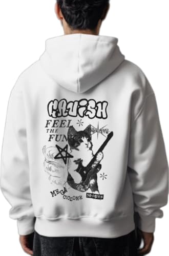 Generic - oversize Youth hoodie white back art over size TEXT job work 45 cat