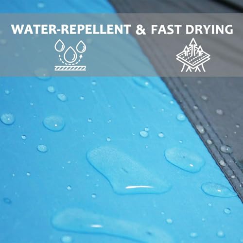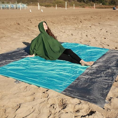 - خامة مقاومة للرمل والماء وسريعة الجفاف: مصنوعة من قماش نايلون متين وفاخر، هذه البطانية تطرد الماء وتجف بسرعة وتقاوم تراكم الرمال. يمكن غسلها في الغسالة لسهولة العناية، مما يجعلها الرفيق المثالي لأيام الشاطئ والنزهات والمشي لمسافات طويلة.